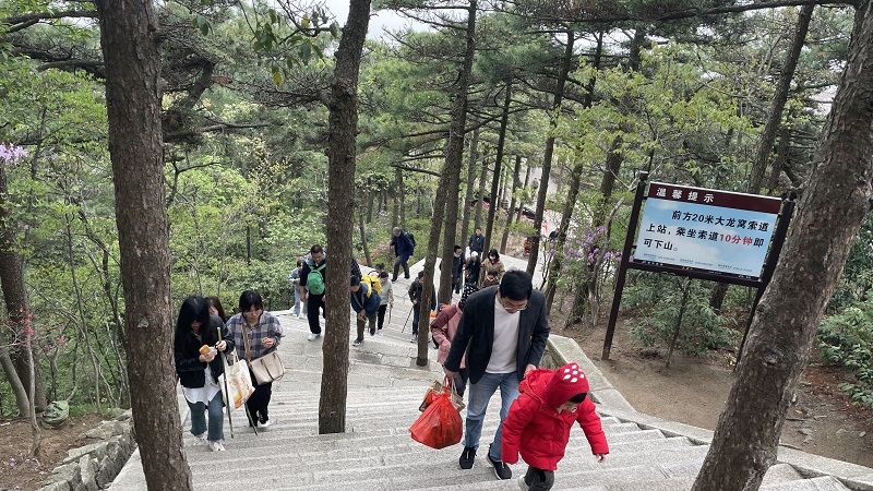 假期第一天,天柱山主要以本地游、周邊游、自駕游為主,此時(shí)的天柱山是賞花觀景的好時(shí)候,漫山遍野的杜鵑花、映山紅等爭奇斗艷、競相綻放,與灰白的山體、蔥綠的樹木、碧綠的湖水相互映襯,景色迷人,使游客忘乎所以,沉浸其中。