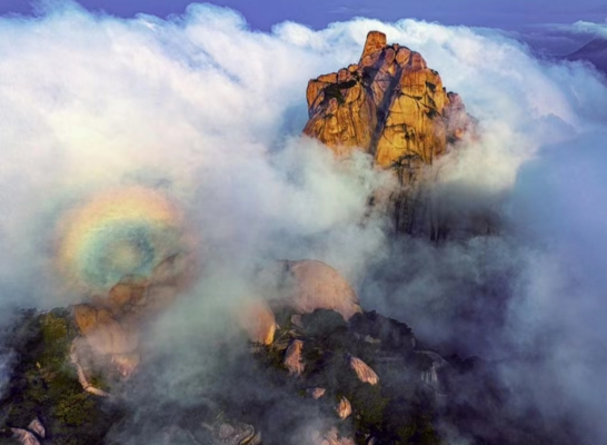 祥云繞峰巒,喜氣盈山川。10月1日,國(guó)慶當(dāng)日天柱山景區(qū)迎客3.58萬(wàn)人次。國(guó)慶節(jié)和中秋佳節(jié)攜手而至,安徽省潛山市天柱山景區(qū)為眾多游客和市民的出行首選。假日期間,四面八方的游客匯聚到景區(qū)景點(diǎn)觀看日出、云海、佛光,喜迎國(guó)慶。云霧在山頭繚繞、聚積、簇?fù)?#xff0c;展現(xiàn)出一幅壯觀的云海佛光的自然美景,與景區(qū)懸掛的五星紅旗相互映襯,為雙節(jié)增添了喜慶氣氛。